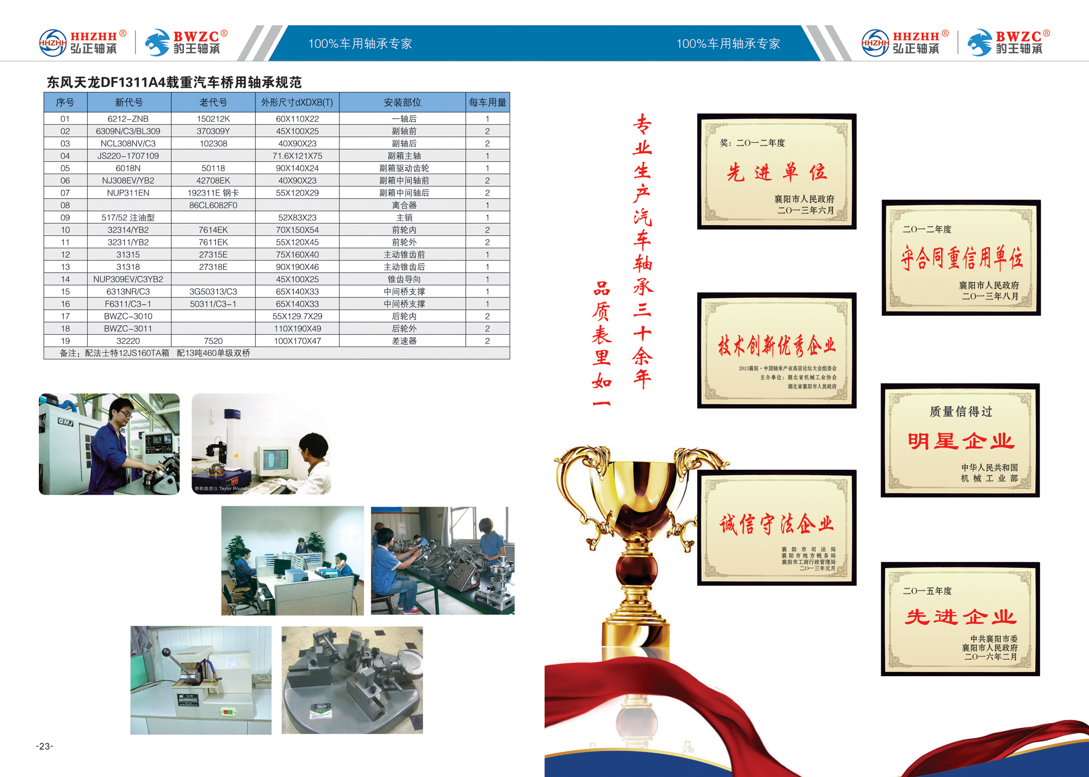 湖北省襄陽(yáng)市騰工軸承有限公司,坐落于中國(guó)汽車(chē)產(chǎn)業(yè)零部件基地--襄陽(yáng),是一家專(zhuān)業(yè)從事軸承開(kāi)發(fā)、生產(chǎn)及銷(xiāo)售于一體的企業(yè)。公司依靠襄陽(yáng)軸承生產(chǎn)基地的地理優(yōu)勢(shì),擁有一批多年從事軸承等相關(guān)技術(shù)研究生產(chǎn)的高級(jí)工程人員,先進(jìn)雄厚的技術(shù)加工設(shè)備,完善的檢驗(yàn)手段,能夠提供各種高品質(zhì)軸承。